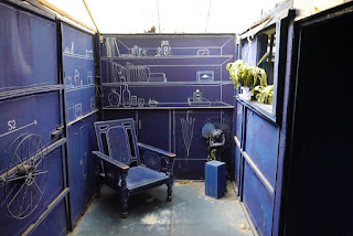 藍晒圖原本是畫在海安路上殘缺的牆上,成為海安路上著名的街景藝術,但是最後因為公共安全的問題而拆除了。